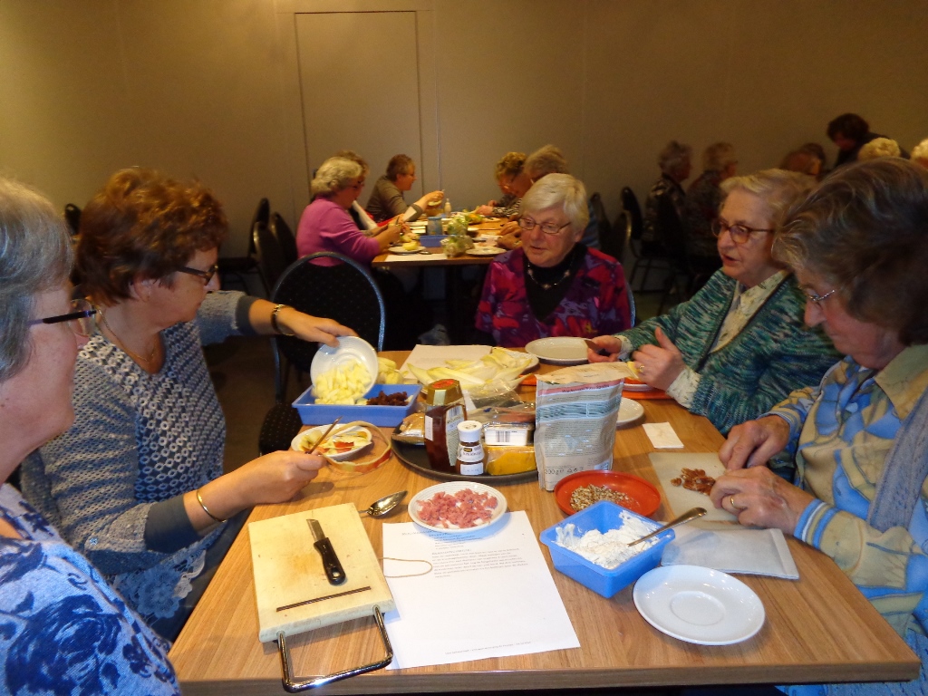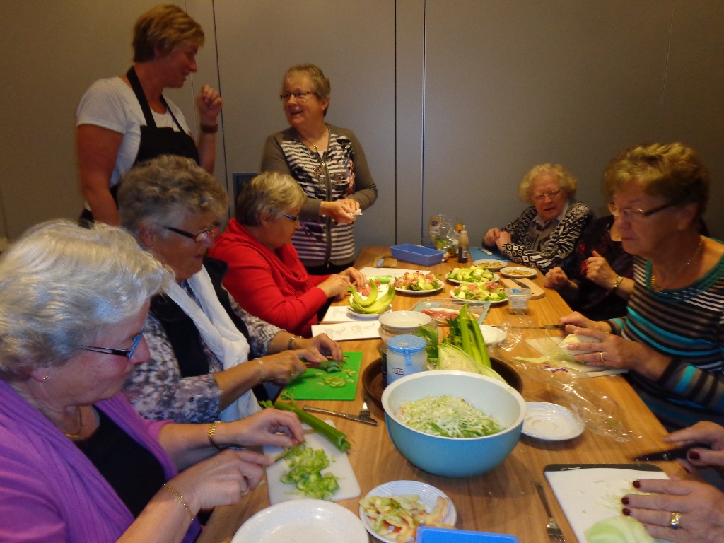 Onder leiding van Marieke en Evelien probeerden we nieuwe recepten uit om bv. op een feestje eens iets anders te kunnen serveren.