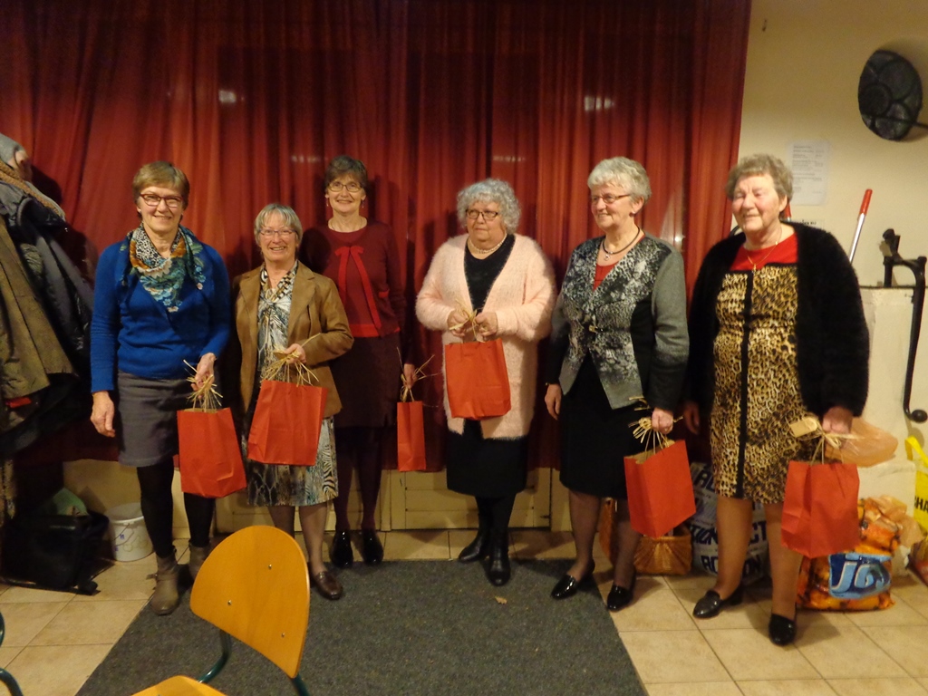 Het bestuur kreeg van de leden geen bloemetje voor hun inzet, maar elk een goed gevulde tas met verschillende streekprodukten.
