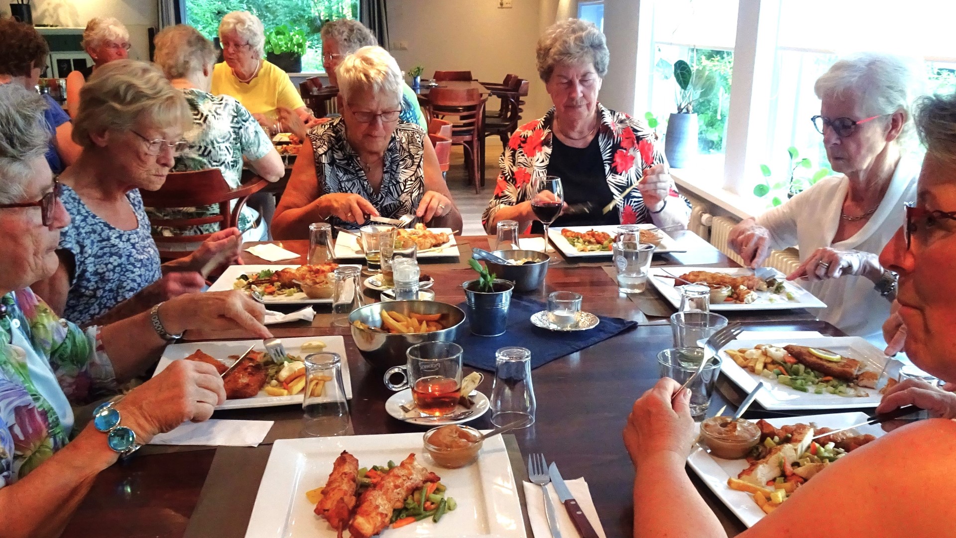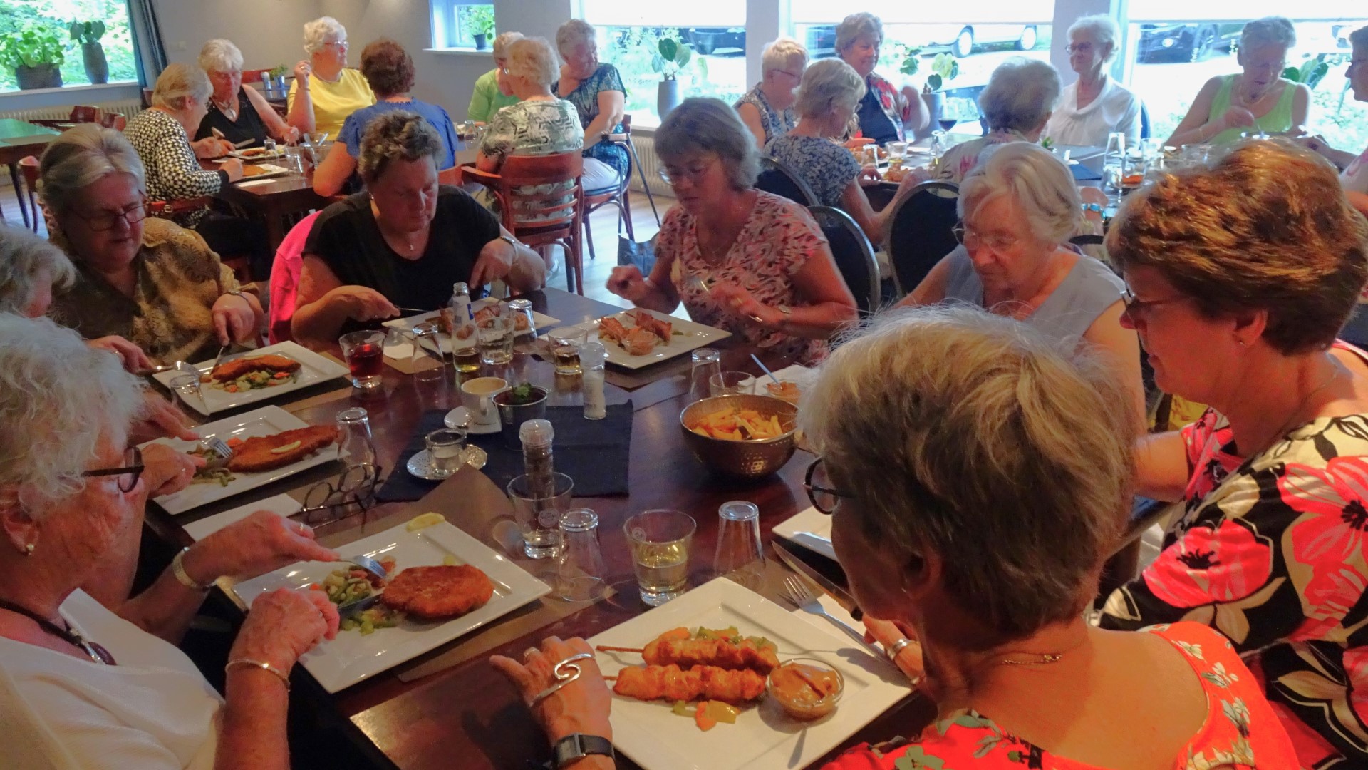 Tegen 5 uur was iedereen per fiets of auto bij restaurant Echo in Harskamp.
