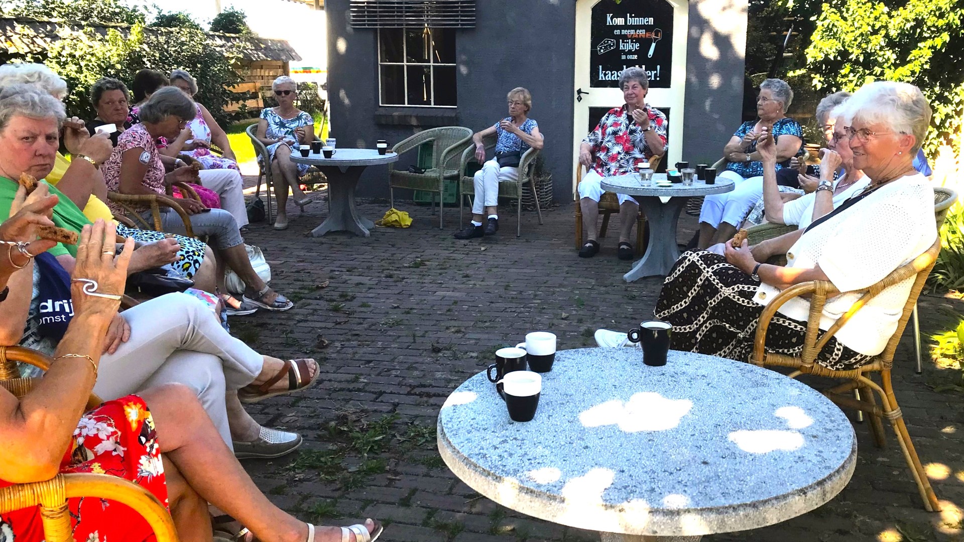 Op het terras van Kaasboerderij en Landwinkel Vanelly kregen we koffie of thee met wat lekkers.