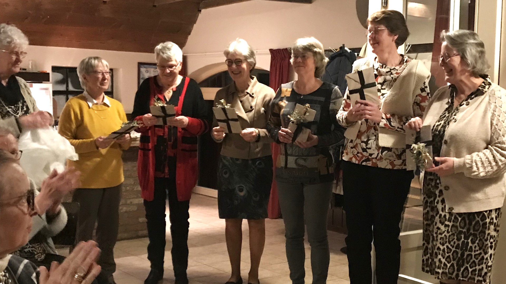 De dames van het bestuur kregen als dank van de leden elk een cadeaubon van een tuincentrum.