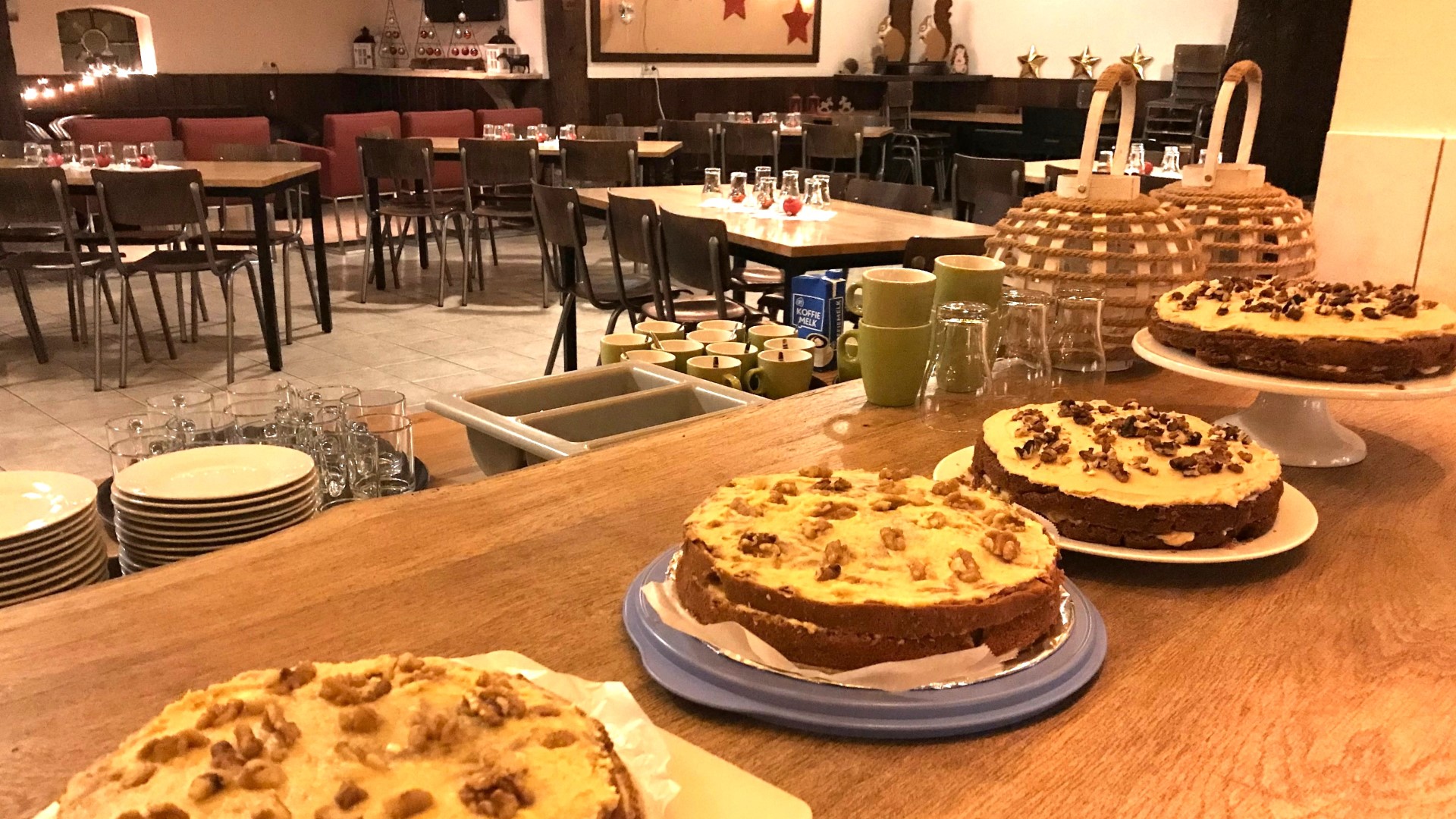 We begonnen met koffie of thee en zelfgebakken walnotentaart.