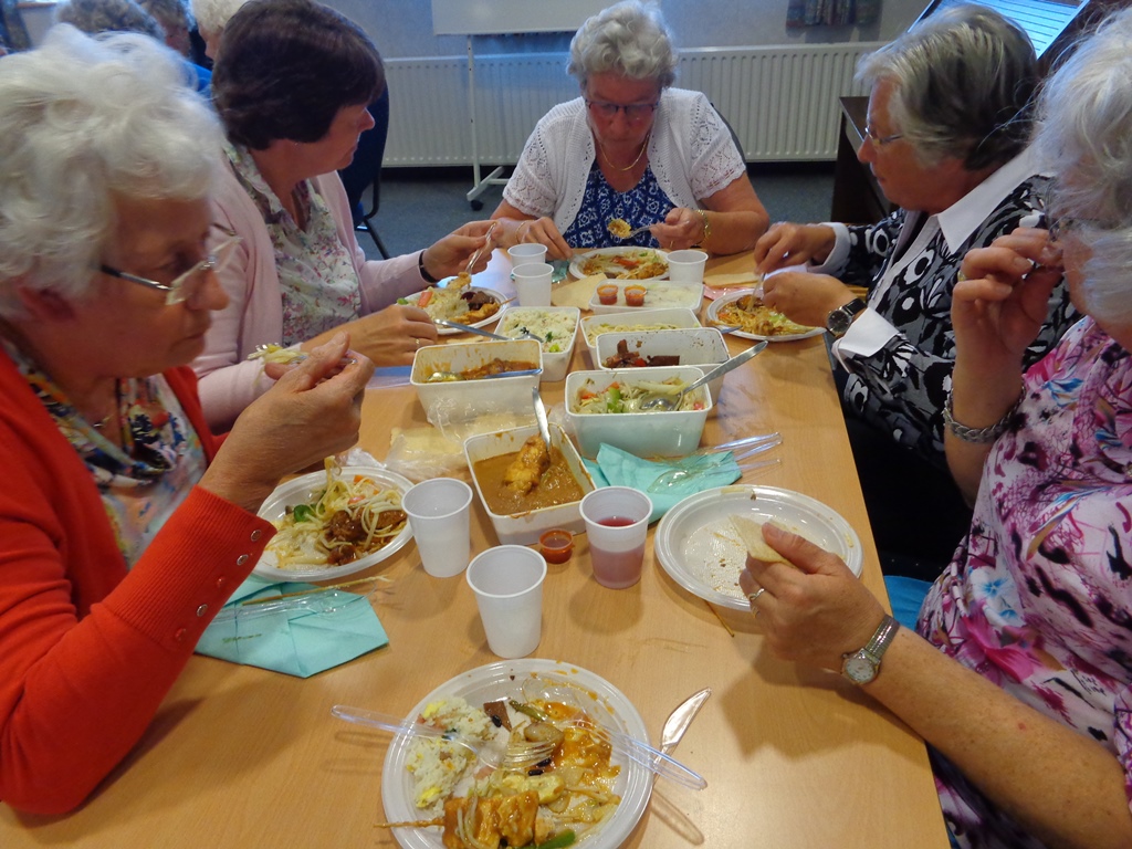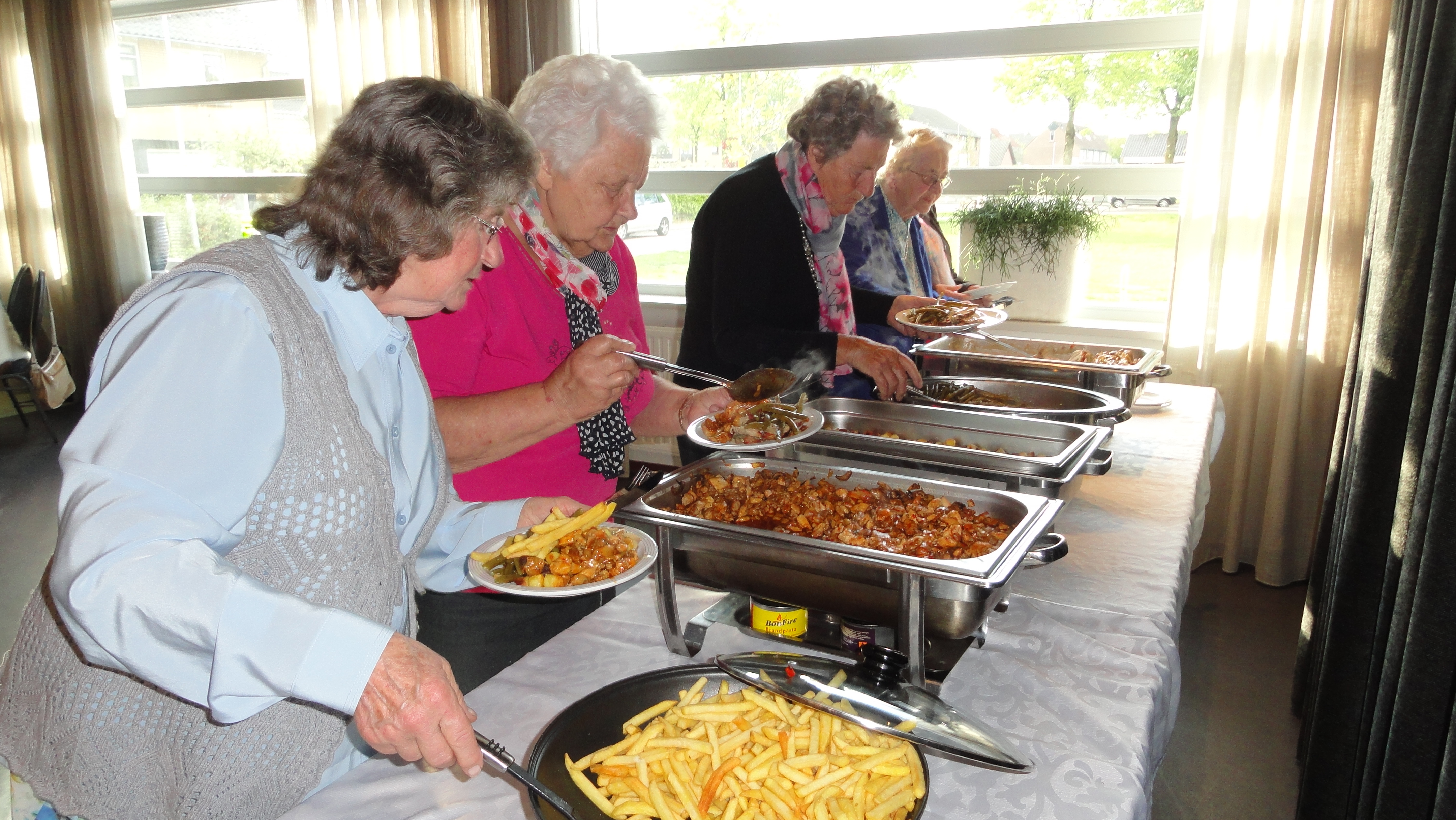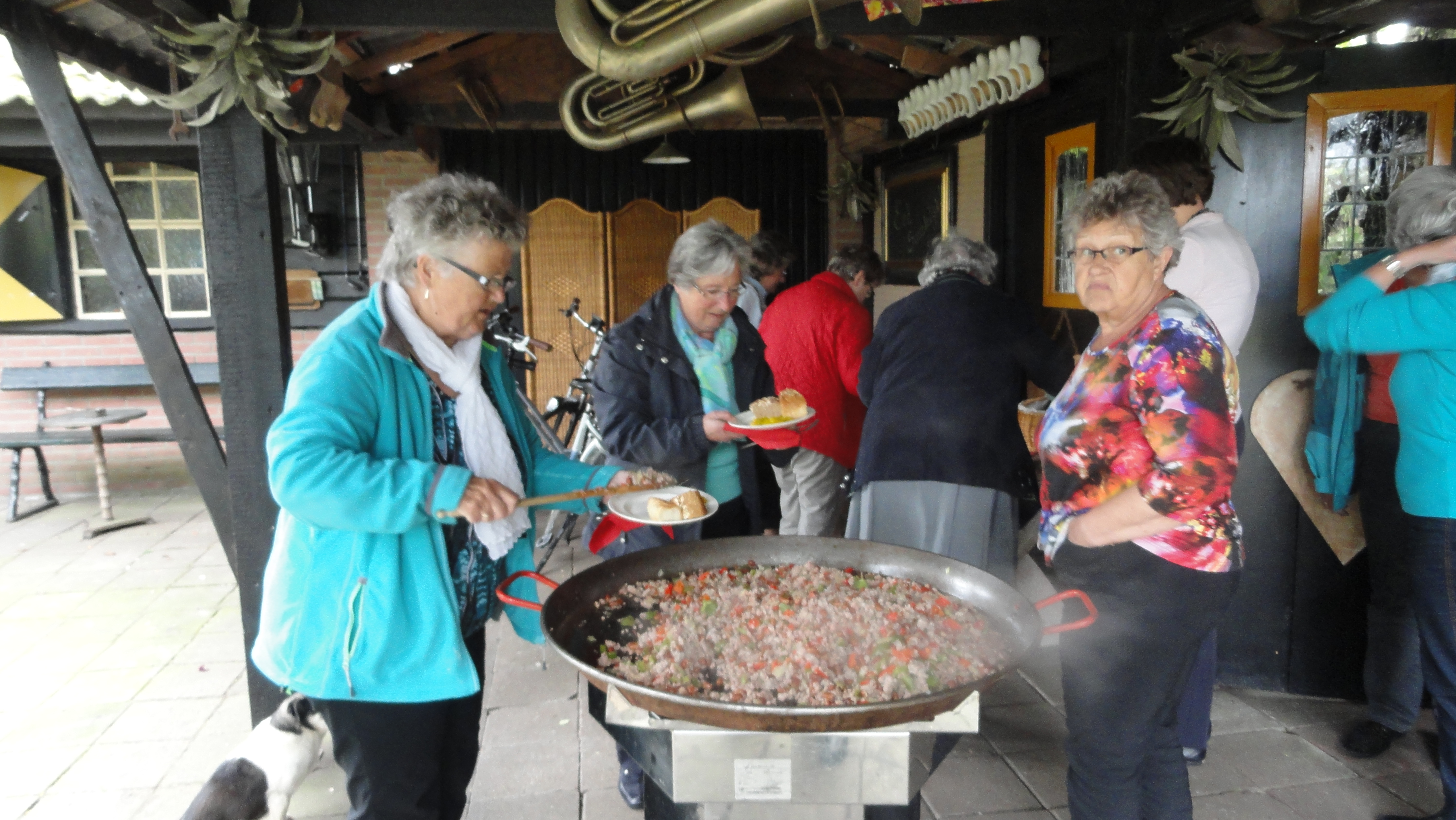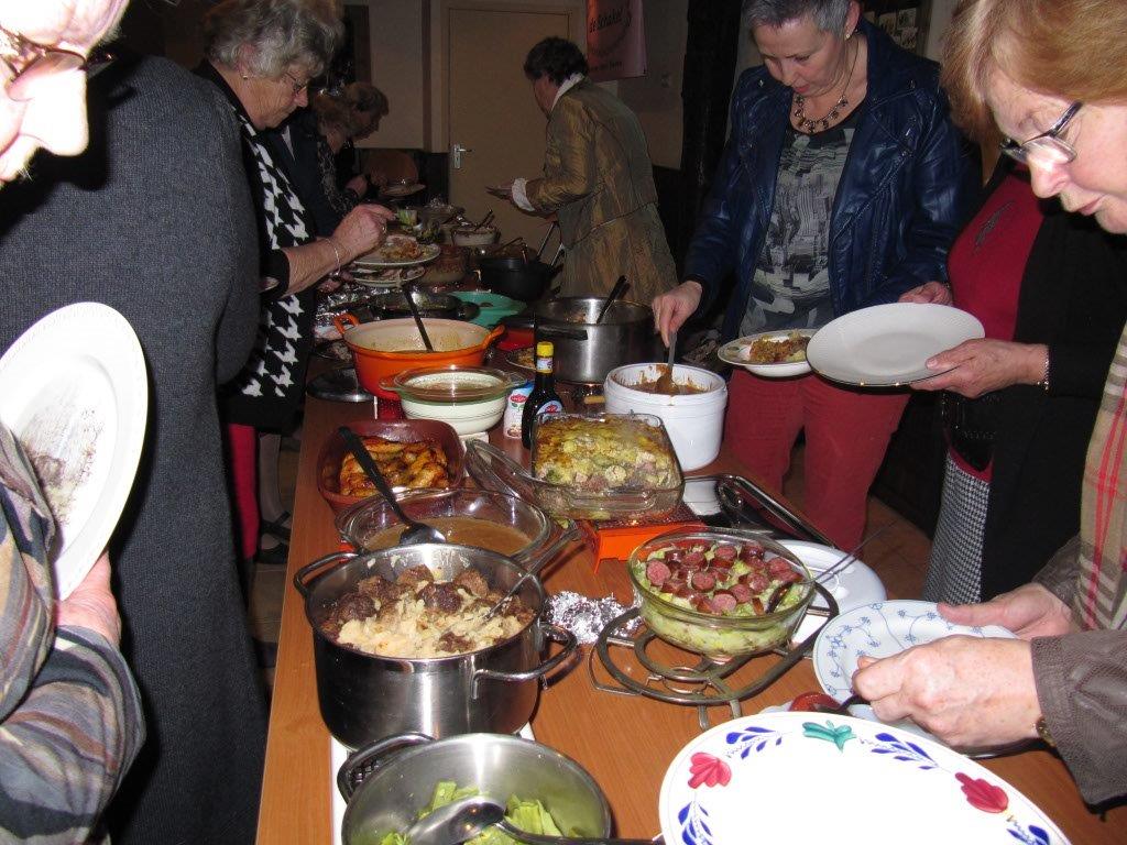 In de Houtkamp te Otterlo werd begonnen met een gezamenlijke maaltijd waarvoor de leden veel verschillende warme gerechten mee hadden gebracht voor het buffet.