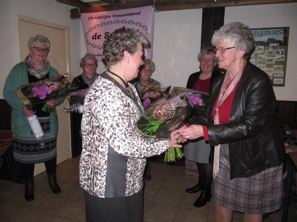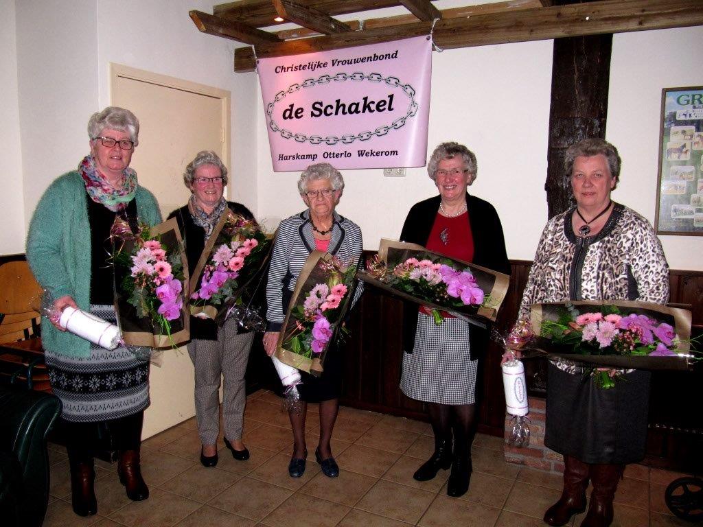 Tijdens deze jaarvergadering werden 5 trouwe leden gehuldigd. Alle jubilarissen kregen een mooie bos bloemen en een handdoekje met waarop het logo van “de Schakel” was geborduurd.