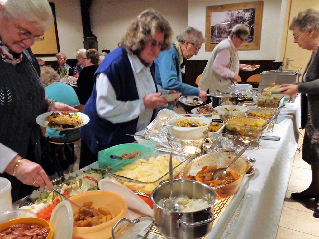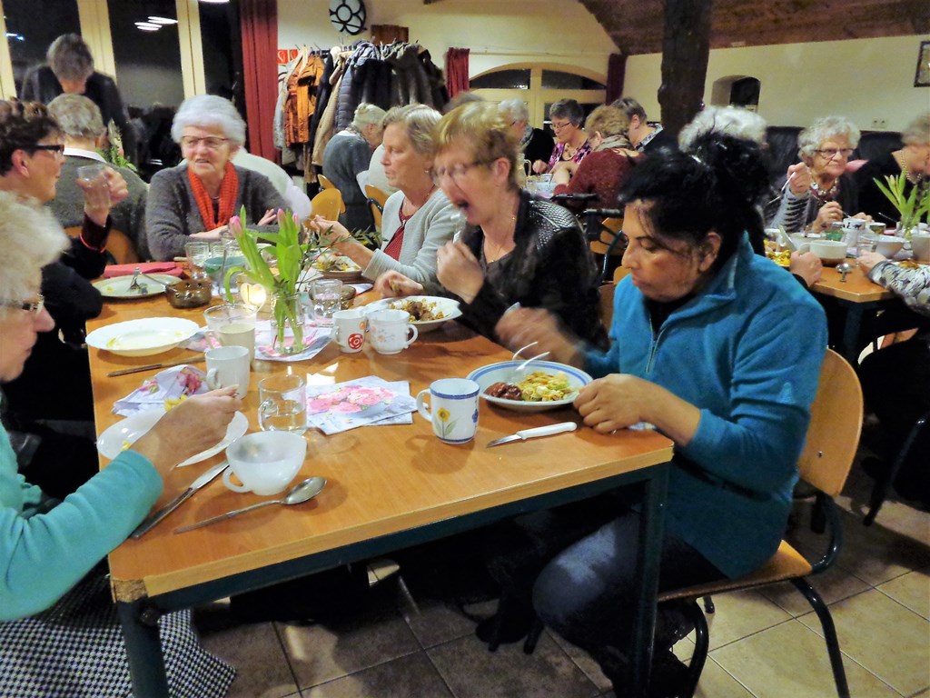 De avond begon met een gezamenlijke maaltijd waarvoor de leden veel verschillende warme gerechten mee hadden gebracht.