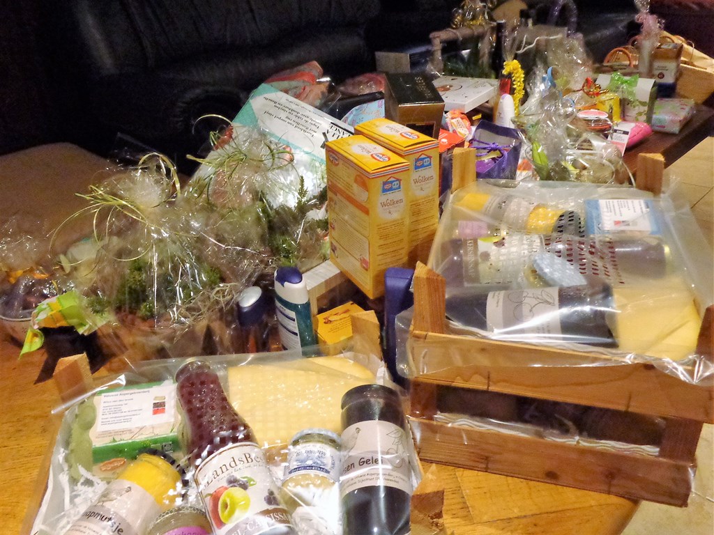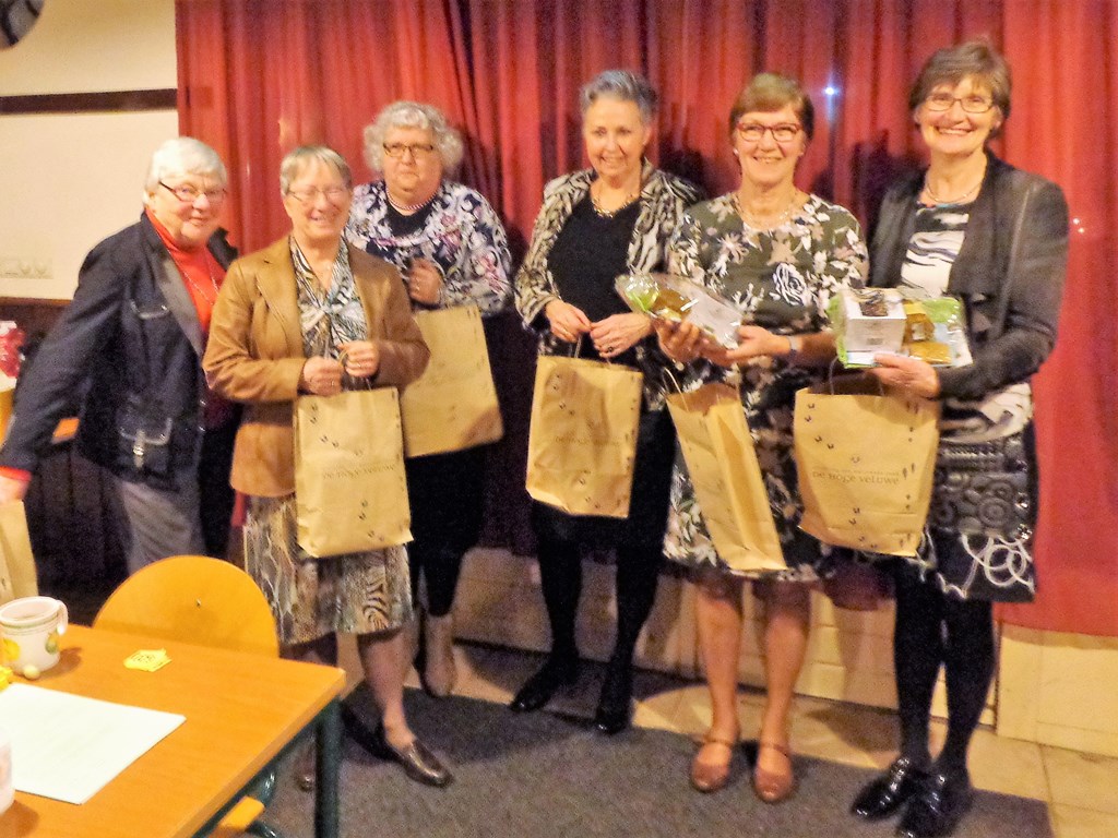 Het bestuur kreeg van de leden elk een goed gevulde tas met streekprodukten.