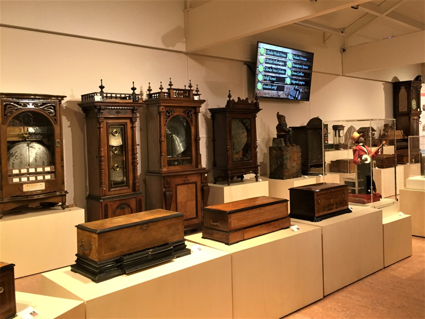 Een gids vertelde ons daar over de geschiedenis en de ontwikkeling van het carillon, speeldoos en orgel.