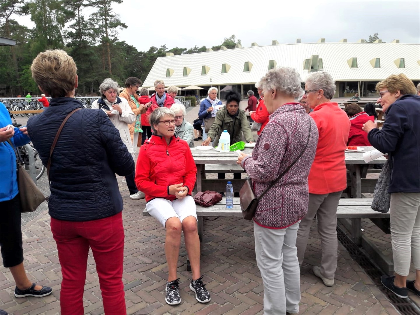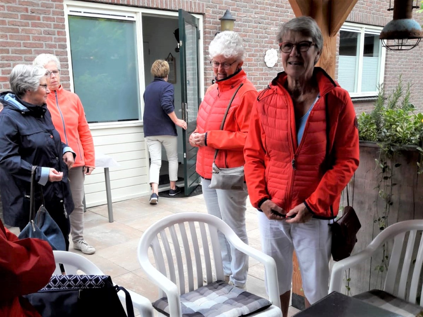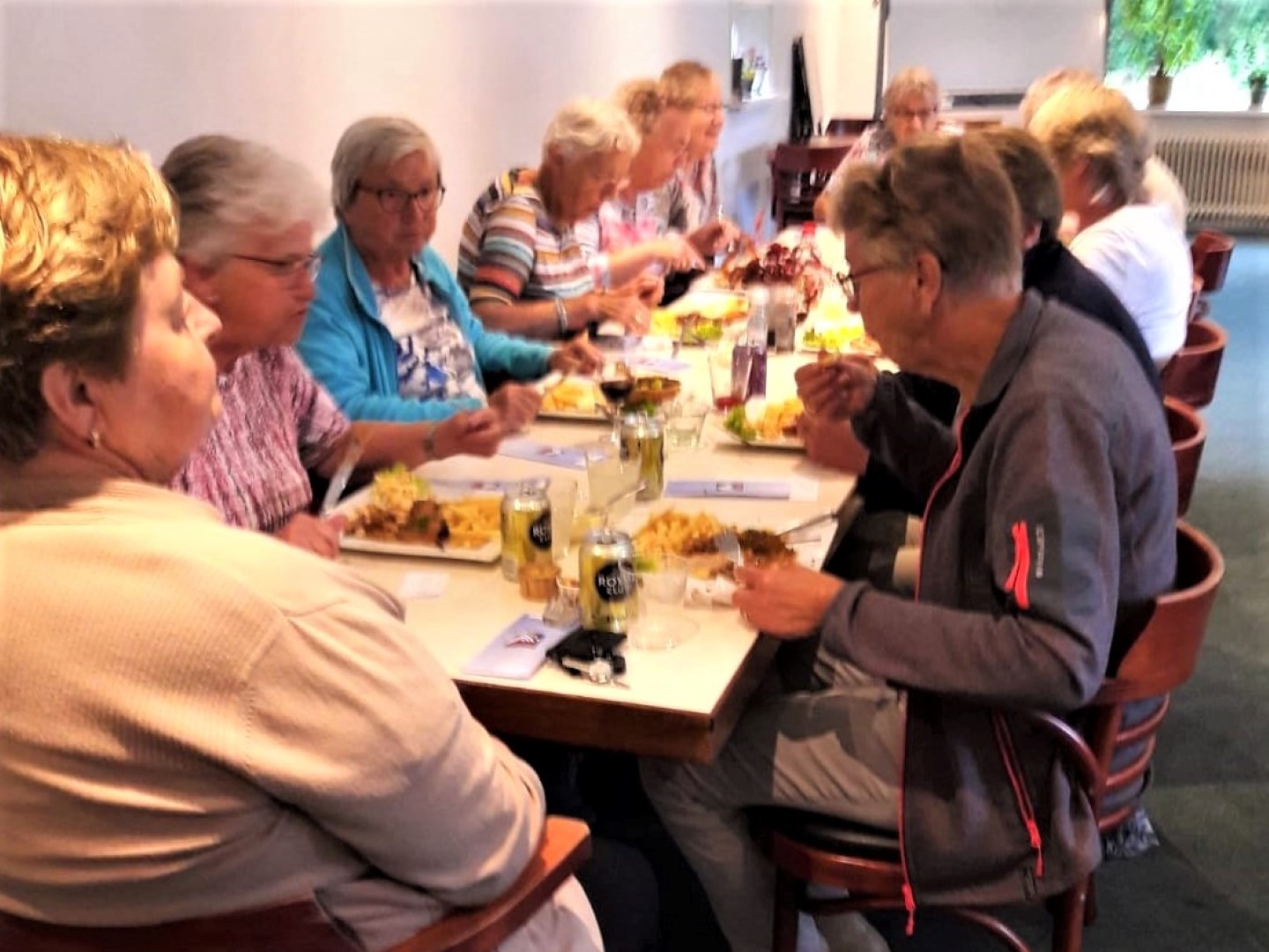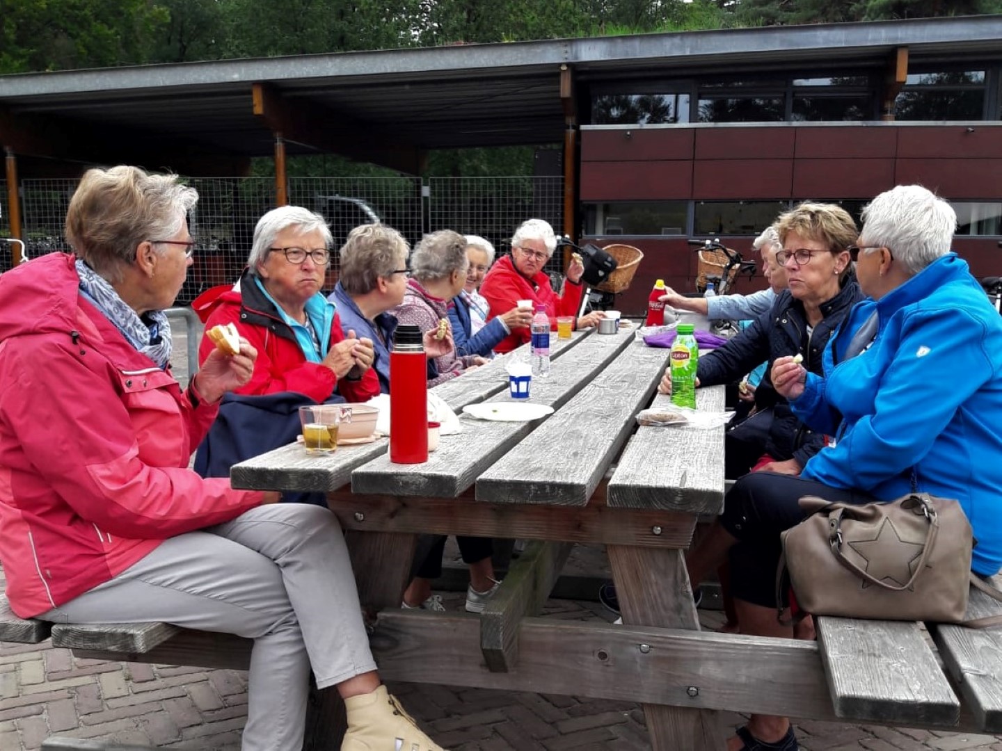 Daar voegden zich nog een aantal leden bij ons die niet mee konden fietsen.