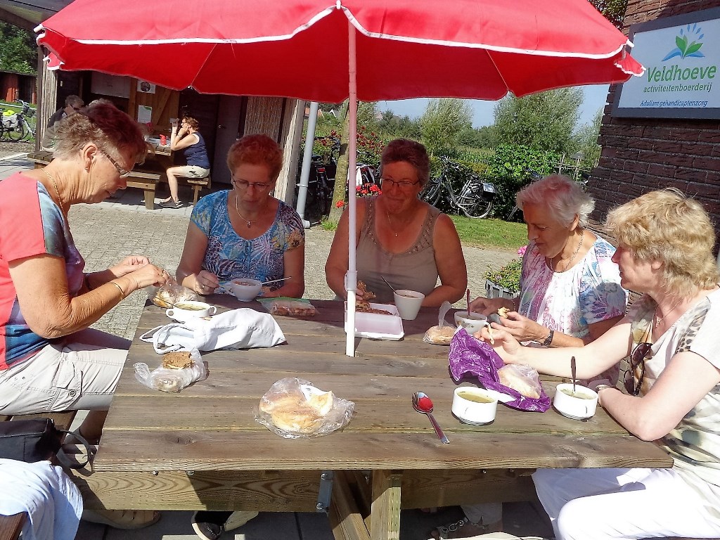 Bij activiteitenboerderij Veldhoeve, in de buurt van Bennekom genoten we van ons meegebrachte brood.