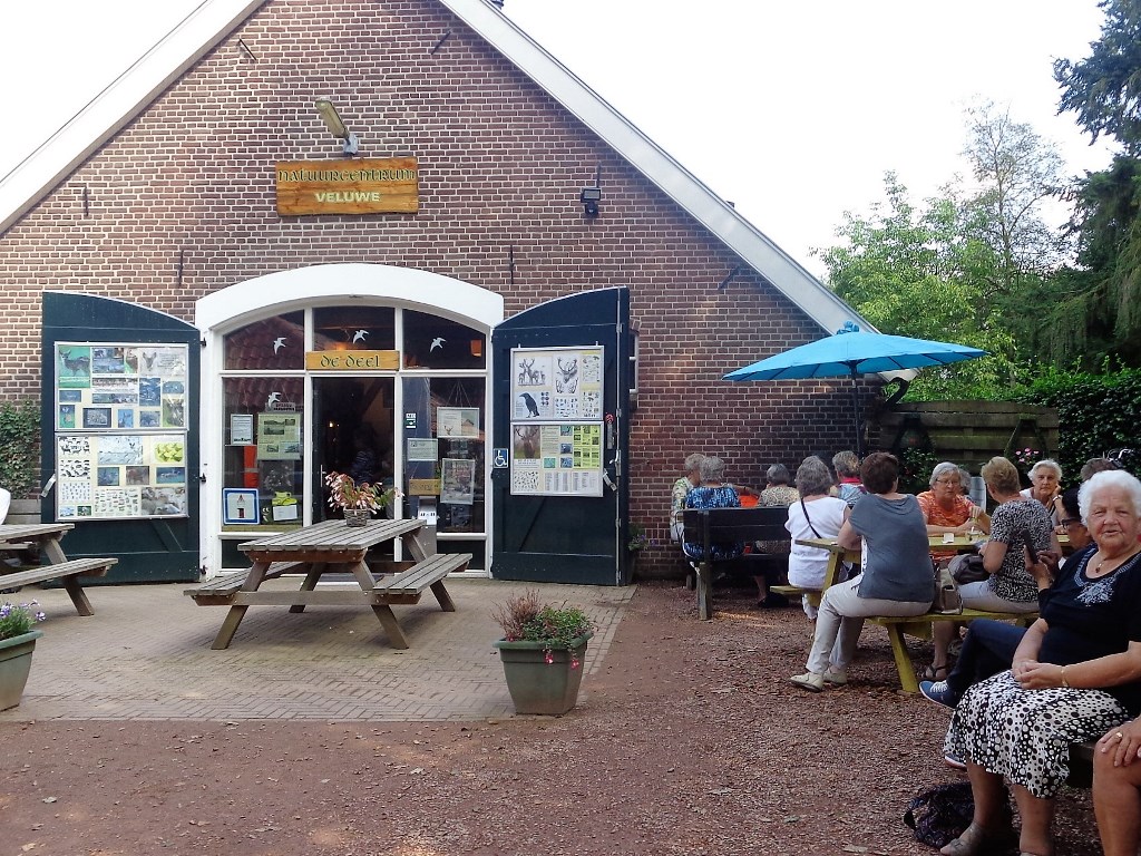 Na verder fietsten door de bossen konden we even zitten op het terras van het restaurant van camping “de Wije Werelt” te Otterlo.